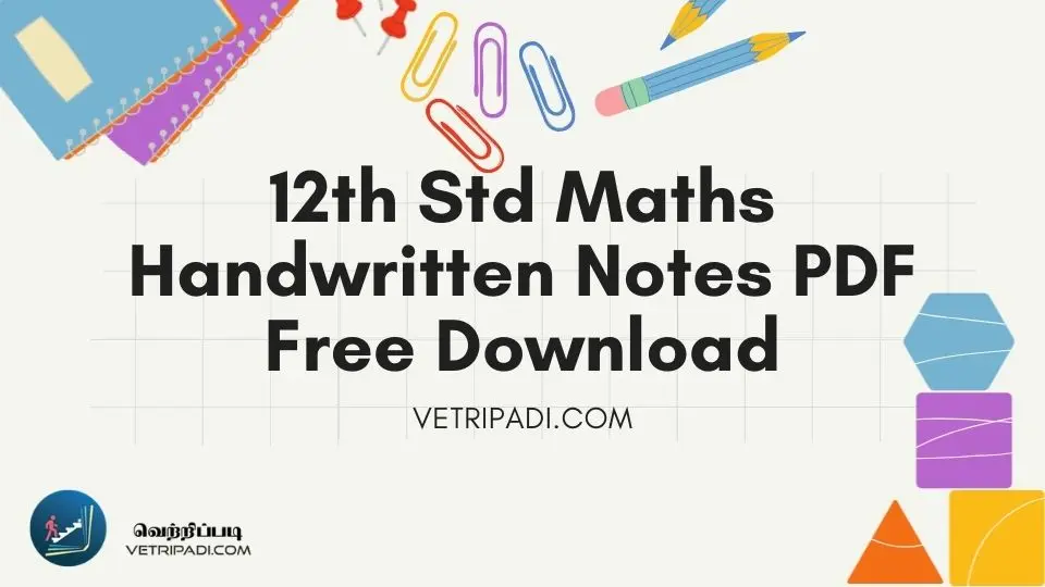 Students preparing for the Tamil Nadu Higher Secondary Examination can now download 12th Standard Maths Chapter 11 Handwritten Notes PDF absolutely free from Vetripadi.com. These notes are specially designed to help students understand concepts easily with clear explanations, step-by-step solutions, and exam-focused presentation.